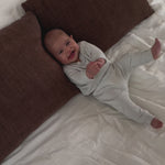 Wir haben eine Mischung aus Bambus und Bio-Baumwolle verwendet, um ein Material zu schaffen, in dem sich Ihr Baby entspannen und den ganzen Tag lang bequem spielen kann!