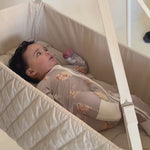 Due to the delicate nature of our luxurious Bamboo fabric, please avoid washing with items that have zippers, buttons, or hardware, as snagging may occur. For best care, wash separately with other baby items.
