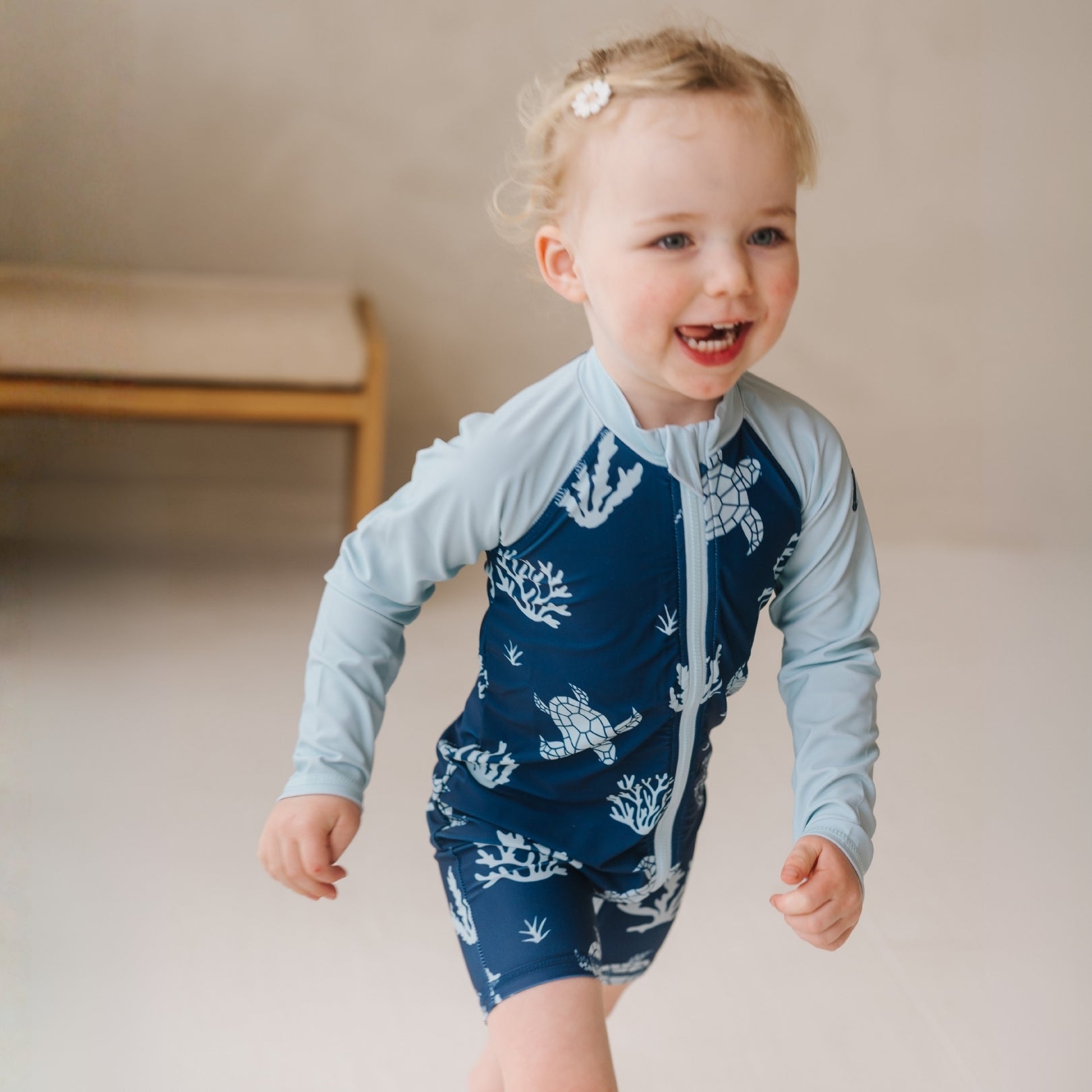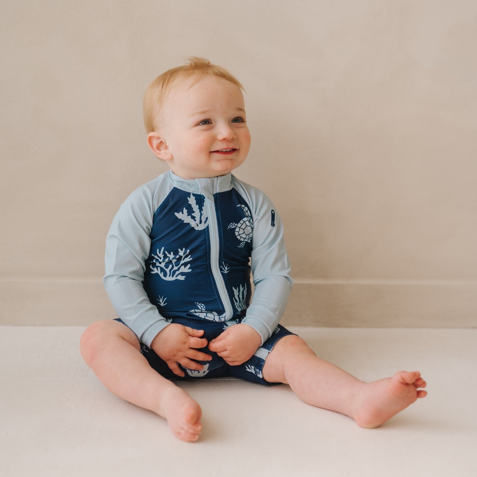 - Zip up fastening to make life with wriggly toddlers easy