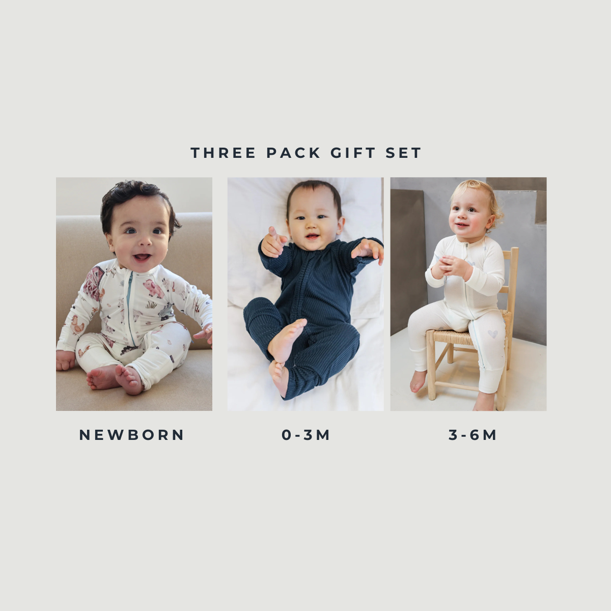We recommend sticking true to size, but if in doubt between sizing, go down. For example, if your baby is 5 months old, we recommend 3-6 months rather than 6-12 months. In most cases, the baby grow will fit until 2-3 months after the top age range.
