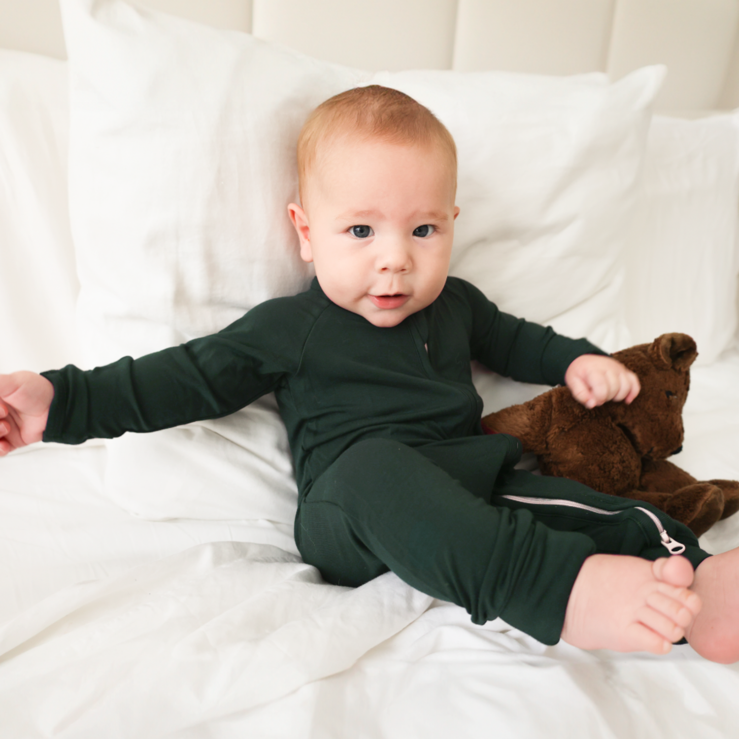 Due to the delicate nature of our luxurious Bamboo fabric, please avoid washing with items that have zippers, buttons, or hardware, as snagging may occur. For best care, wash separately with other baby items.