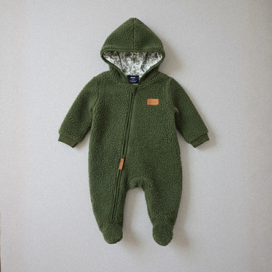 Sustainability is at the forefront of everything we do, including how we created our teddy suit. Made from soft, recycled polyester on the outer shell to protect your little one from the elements and ensure durability