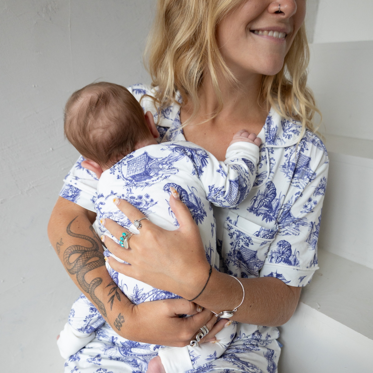 Apportez une touche de magie intemporelle à votre garde-robe avec notre collection fantaisiste Toile de Jouy. Disponibles en bleu tendre et en rose tendre, ces imprimés enchanteurs allient l'art classique au confort moderne. Chaque pièce est fabriquée à partir de notre tissu en bambou parfaitement doux, offrant un toucher luxueux, respirant, durable et doux pour la peau.