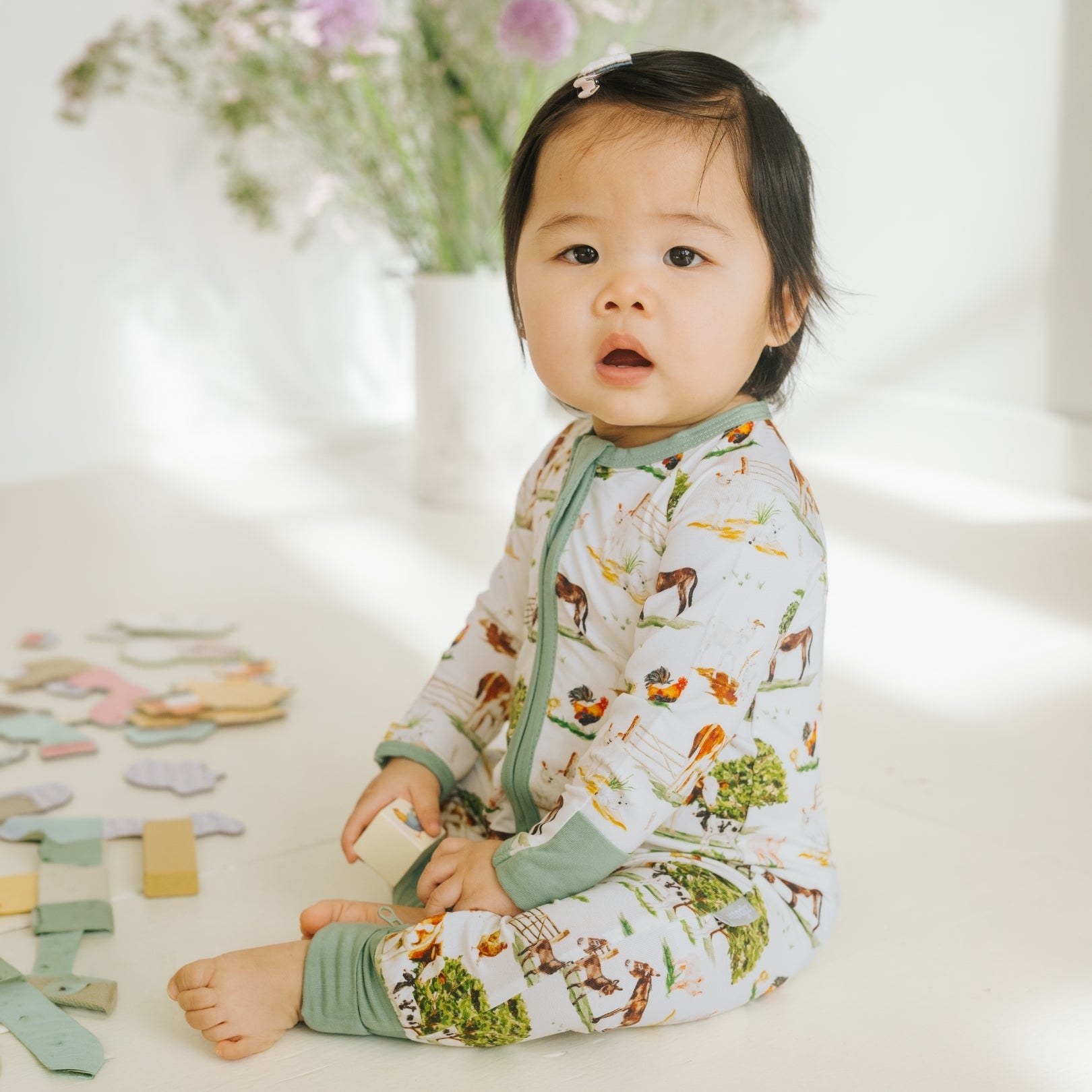 Poiché i tessuti più morbidi come il bambù sono più inclini al pilling, stendere i capi in piano per farli asciugare aiuta a mantenere la loro freschezza. Molte mamme scelgono di asciugare in linea per mantenere la consistenza, preservare il colore e prolungare la vita di ogni pezzo.
