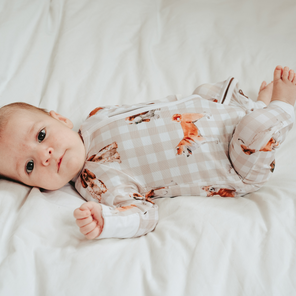 Door de delicate aard van onze luxueuze bamboe stof, vermijd het wassen met items die ritsen, knopen of hardware hebben, omdat ze kunnen blijven haken. Voor de beste verzorging apart wassen met andere babyspullen.