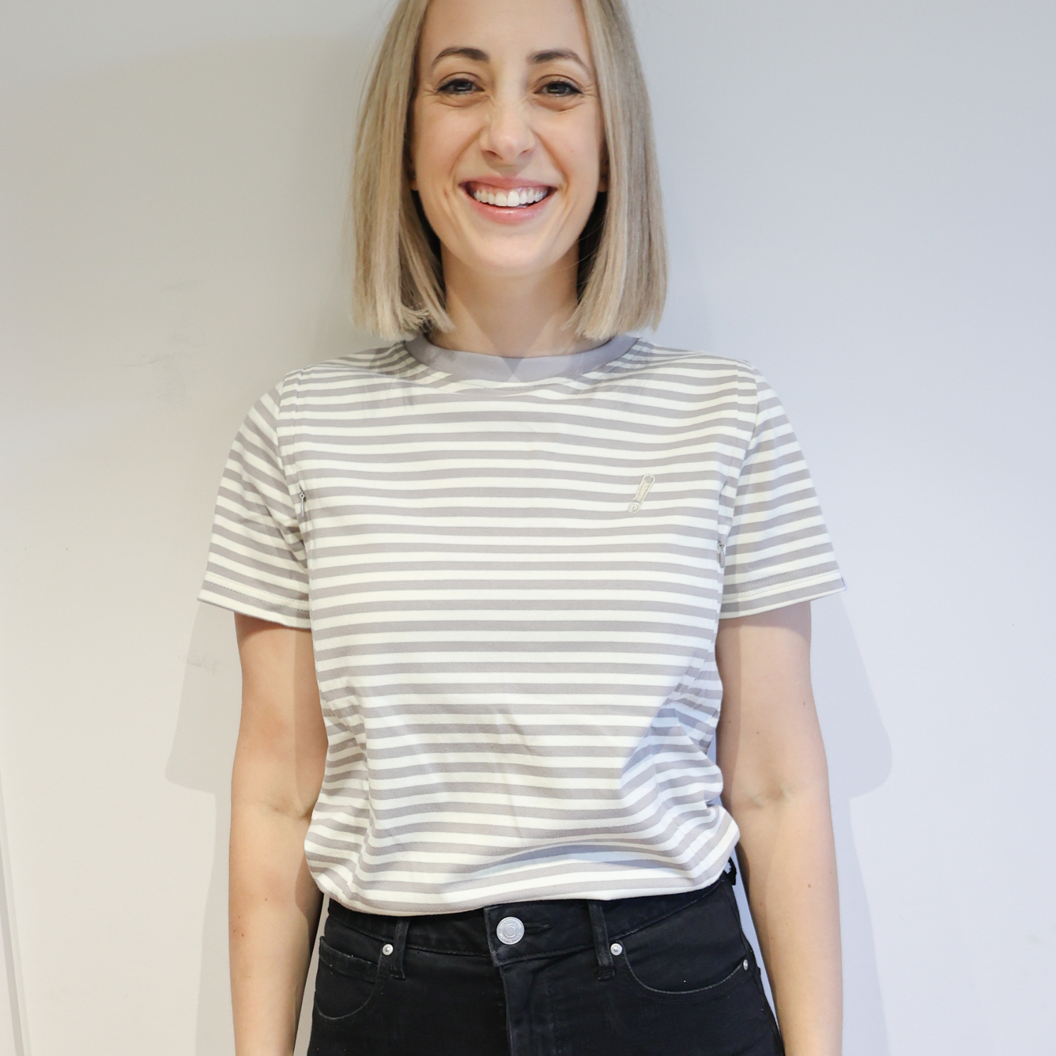 Dit gestreepte borstvoedings-T-shirt is gemaakt van 100% biologisch katoen. Het bevat geen stretch. Neem 1 of 2 maten groter als je de voorkeur geeft aan een standaard tot losse pasvorm.