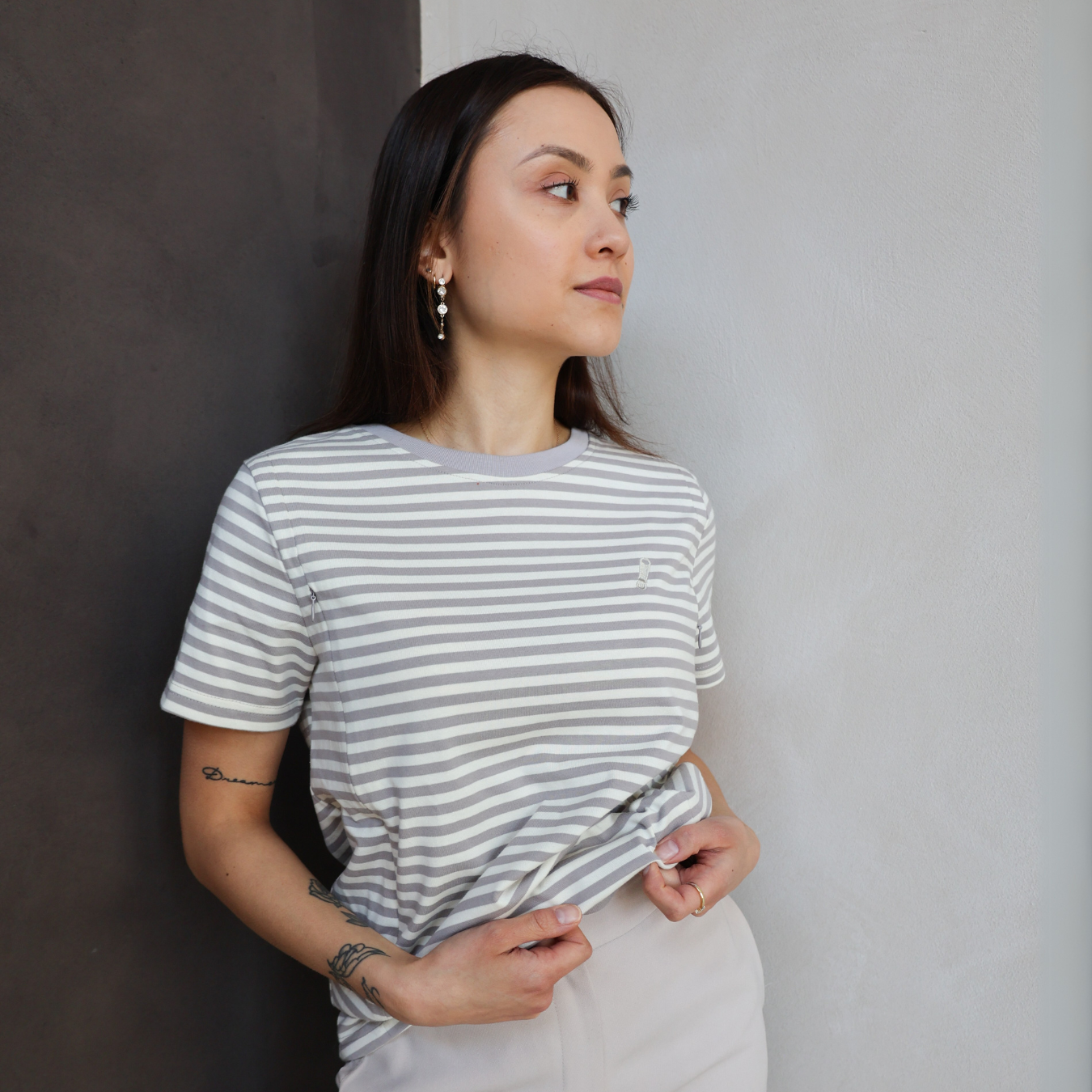 Organic Cotton Breastfeeding T-Shirt Beige Stripes