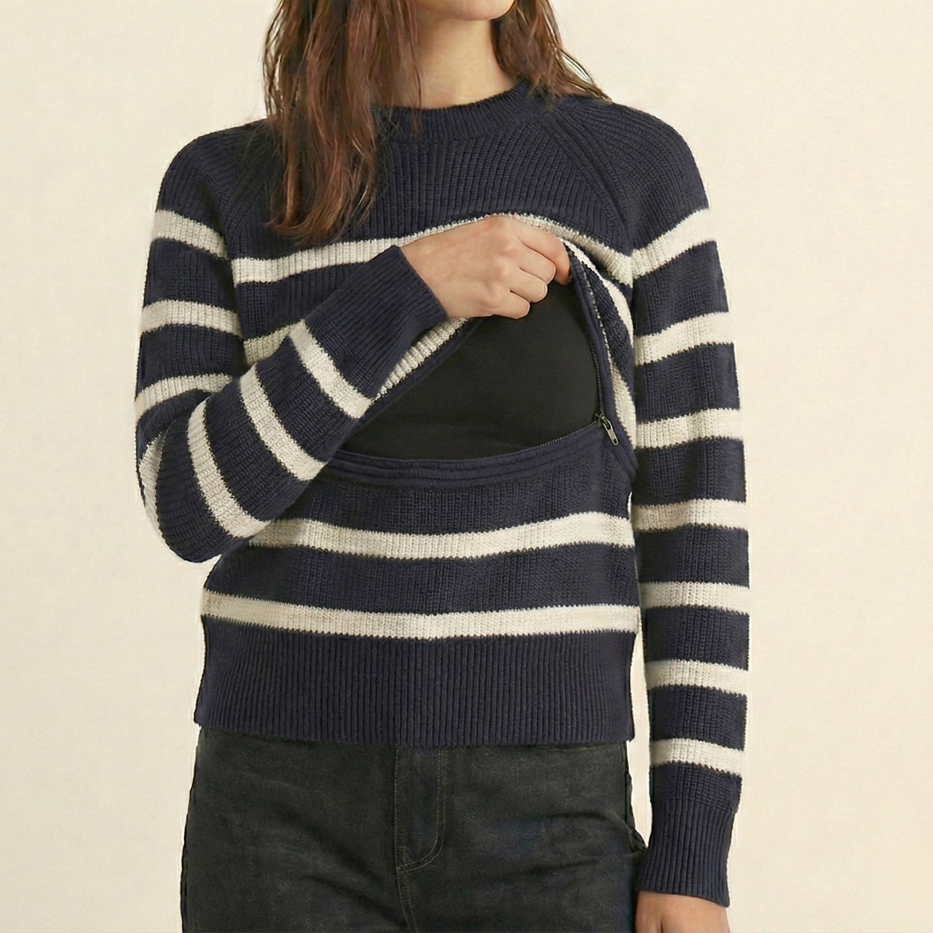 - Ukryte zamki błyskawiczne do karmienia piersią